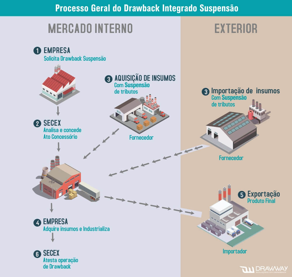 Têm direito ao incentivo do Drawback as empresas que realizam operações de industrialização sobre partes, peças, componentes, matérias-primas e/ou outros insumos importados ou adquiridos no mercado interno, fabricando com eles produtos destinados à exportação.