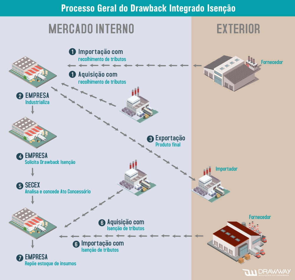 Têm direito ao incentivo do Drawback as empresas que realizam operações de industrialização sobre partes, peças, componentes, matérias-primas e/ou outros insumos importados ou adquiridos no mercado interno, fabricando com eles produtos destinados à exportação.